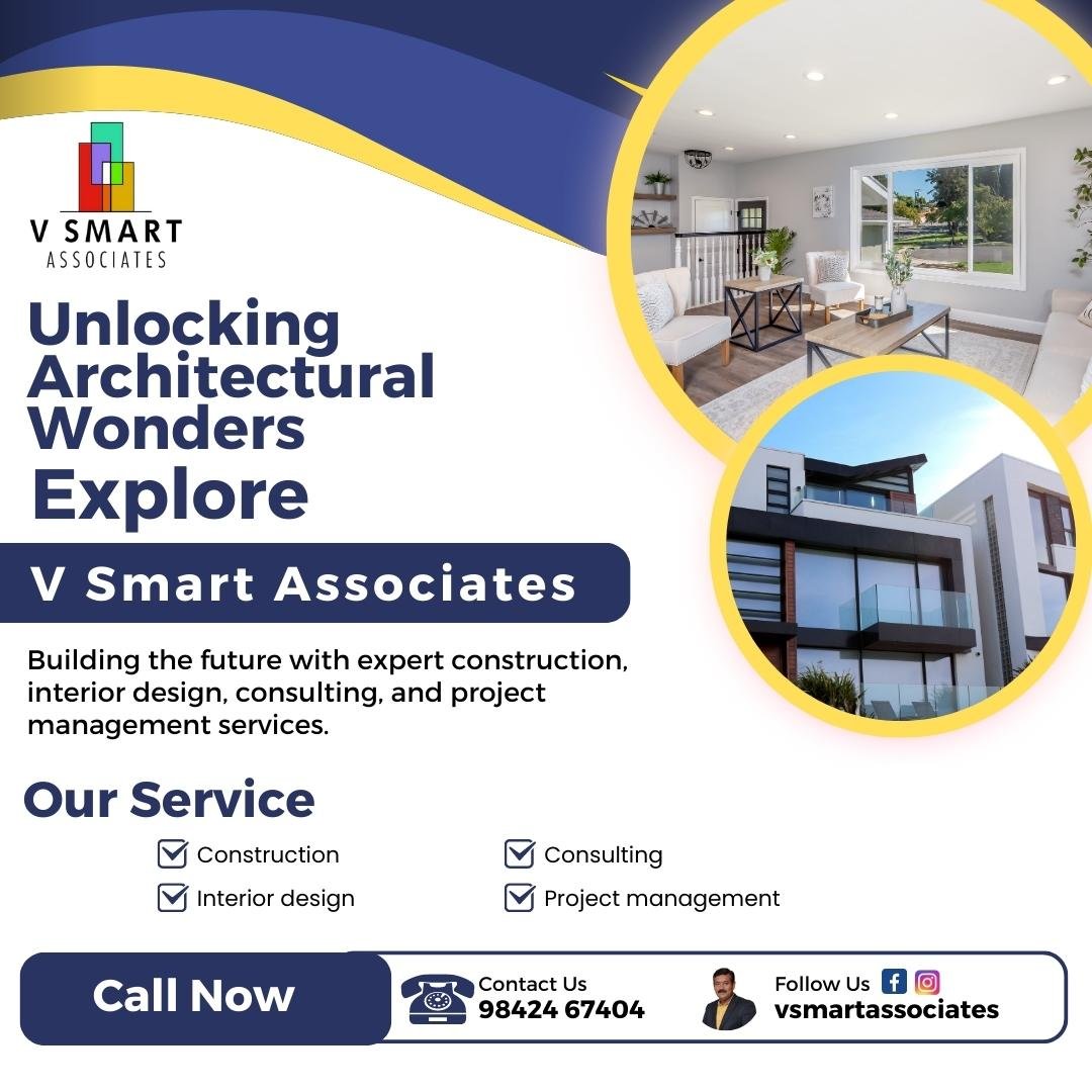 V Smart Associates has been a premier name in real estate and construction. Located at 5A, Meenakshi Nagar, 2nd Street, in Madurai's Villapuram area, we are dedicated to crafting exceptional living and working spaces. Our expertise spans from innovative building design to meticulous project execution, ensuring every structure we create is a testament to quality and modern craftsmanship. We transform visions into reality, delivering properties that not only meet but exceed expectations for beauty and functionality.
